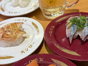 なんかキャンペーンで今ならハイボール半額。 200円(税込)。神様仏様スシロー様。