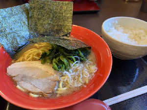 数ヶ月に1度変わる店。今は家系ラーメンのすずき家さんで出店中。家系ラーメンとスープとご飯合うな🍚🍜