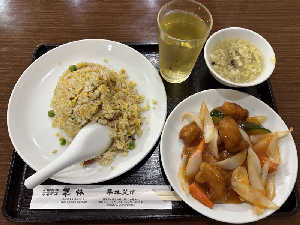 時間の都合で前飯 酢豚にきゅうり入りも悪くない 米小粒のパラパラチャーハン