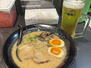 スタッフさんにおすすめ頂いたサ飯🍜 徒歩1分の距離 餃子と替え玉もいただきました👍