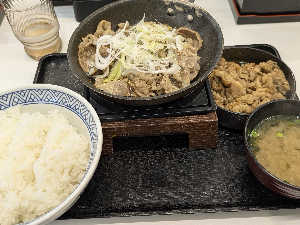 ふと思いついて 久々の吉野家 豚汁変更して1108円 うますぎた