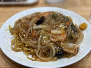 本格中華であんかけ焼きそば。サ活後にガッツリ頂きました。