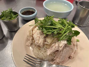 大好きなカオマンガイ ジャスミンライスと骨スープの塩加減がたまらん ライスにニンニクの味するのも最高