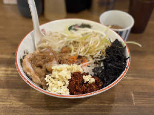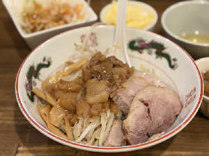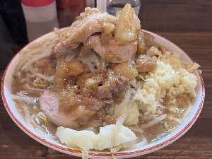 にんにく少なめで すごく食べやすい二郎系です。 300gはちょっと多かった💦