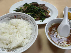 人手不足のため特別メニューで営業。よって厚揚げうま煮食べられず。でも、レバ野菜炒めも旨し!