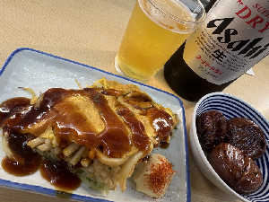肝は鱧笛と呼ばれる浮袋も付いてる。他に広島焼、麻婆豆腐などもあり美味そうでした。