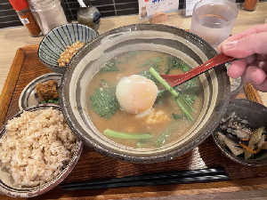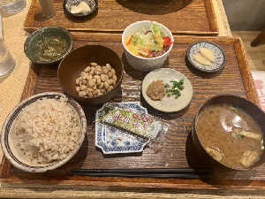 那覇では数少ない上質朝食屋さんだろうなぁ‥玄米にしたらもっと良かったかも‥ヘルシーで美味しい😋