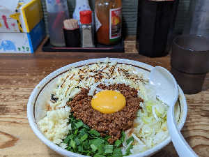 まぜそば。ニンニクとニラと。卵と魚粉と。海苔とミンチと葱と。最高かて。美味スギ。