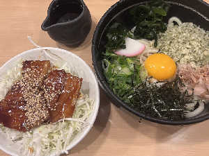 甘辛いタレが美味しいバラ丼 うどんは…大阪のきつねと比べちゃダメ