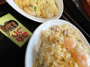 炒飯がとにかく美味い👍 そして海老と玉子のボリュームが良き良き👍 川崎餃子みそはもち購入👏