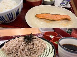 そばと鮭定食、サウナ後って胃袋宇宙になる。