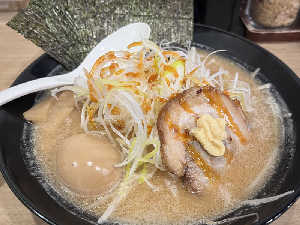 あっさり系な味噌だが、粒大豆混入の本格味噌使ってるのかな。後半は一味で味変。