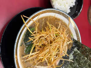 家系で珍しいかな、塩。麺少な目にするとトッピングか小ライスが選べる。