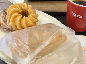 ザクもっちリング スパイシーミート&ポテト【 ¥275 】 ミスドアイスカフェオレ【 ¥308 】