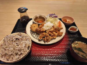 もろみチキンの炭火焼きと鶏ごぼう生姜ご飯定食