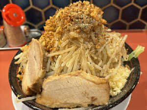 初次郎系ラーメンに挑戦。にんにくのパンチ力にやられつつもこってりどっしり美味しくいただきました。