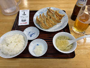 館内レストランクローズ。15時でランチ難民。肉肉しい餃子と野菜たっぷりラーメンが染み渡る。よき。