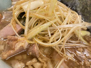 限定プレミアム醤油。タマネギ 増しが良さそうです。白髪ネギ、のり、コロチャートッピング! よき❤️