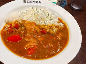 ツナサラダとラッシーつけて、ライス300gで、1辛。 1,750円なり。