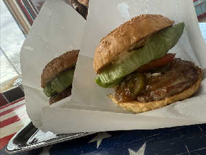 犬には蒸した鹿肉。人は楽しいハンバーガー。