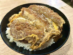 カツ丼とミニ蕎麦セット。 梅ヶ枝餅も食べた。