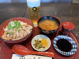 甘めの醤油だれと玉ねぎ、地鶏に合っていて美味しい。薩摩汁美味しく好みの味の店見つけた。
