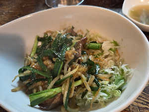 カレー味のレバニラ炒めのせカレー ※こちらでも偶然偶然のサ友に😆