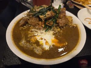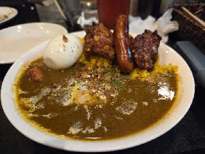 炒め玉葱が効いて甘めだがスパイシーな欧風、インド風でもないサラサラの徐々に癖になる感じのカレー。
