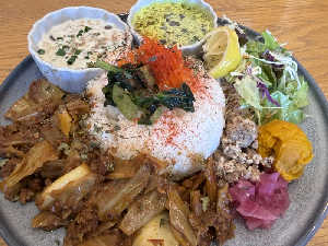 旭川空港に支店もある米農家さんのカフェ。野菜たっぷりで体に良いもの食べれた。