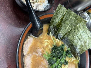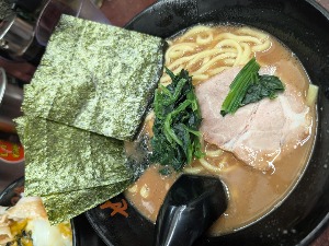 久久しぶりのとんこつ鶏ガラ家系ラーメン!ほうれん草が進む〜〜!