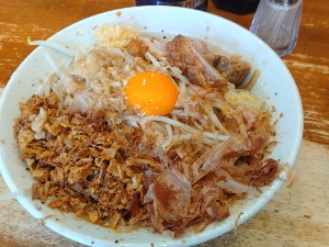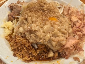 「カラメアブラニンニクマヨ」の呪文。 追いメシもいただきました。 うまい😋