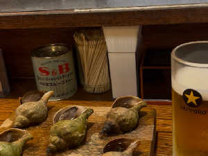 汁が日本酒とよく合う。奥に身が 残ったら店員さんがトントンしてくれました。