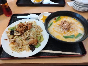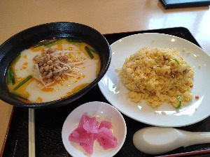 台湾とんこつラーメン、炒飯。炒飯の量が少し減りました。