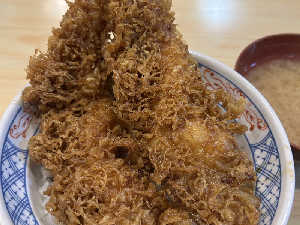 厚さ3センチくらいあるカツ。つけ天も食しました。