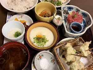 磯辺揚げがんまい。サウナ後にこんなヘルシーな定食なんて最高。