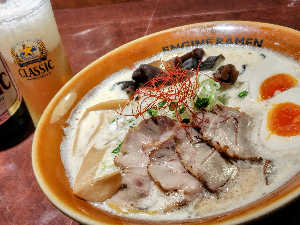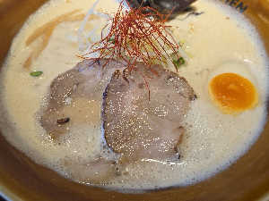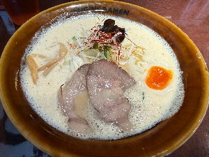 泡立て泡が表面にあり、スープがまろやか、うまい。店の前から、信玄の行列見えるけど...