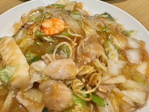 サ前メシ🍜牛肉と白菜のあんかけをライスにのっけて頬張る🍚