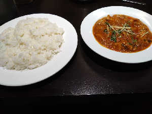 もつ煮込み(多分 羊)カレー 意外とスパイシーだったのでライスが合う