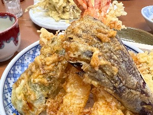虹鱒のお刺身もわかさぎの天丼も、どちらもうまいっ!😆
