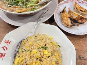 23時のラーメンは良くない…ということで我慢して。ラーメン少しと焼き飯を半分くらいもらって食べた