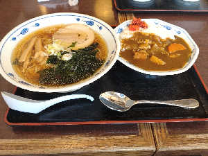 三条カレーラーメンの有名店 ちゃんと辛いカレーで美味しかったです(また汗かいてしまった)