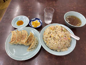 友人とチャーハン、ノンアルビールをシェア。お土産に中華まんを購入。