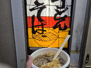 The Saunaから帰り道にある自販機の蕎麦。 玉子を持参して天玉そばにした😆