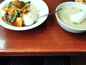 中華丼セットにイカの特製醤油炒め