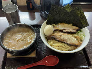 徒歩で行ける、お昼は並ぶつけ麺屋さん。 ノーマルよりも、辛いカレーつけ麺がオススメです。