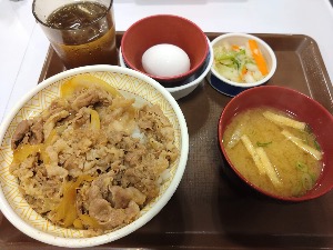 勿論汁だく。初めてのチーズ牛丼体験。好きな人は好きなのだろう。個人的には牛丼にはチーズは合わない、と