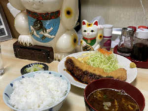 赤だしの味噌汁とミソカツが良き。ミソもそんなにクセもなく食べやすい。