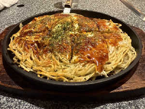 今日はお好み焼きの麺をうどんにしてみました😀