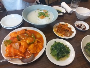 東北料理という事で四川でなさそうなものをチョイス。お粥は洗面器サイズ。おいしい。