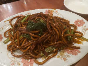 麺がモチモチで甘めのタレですがすごく美味しかったです。